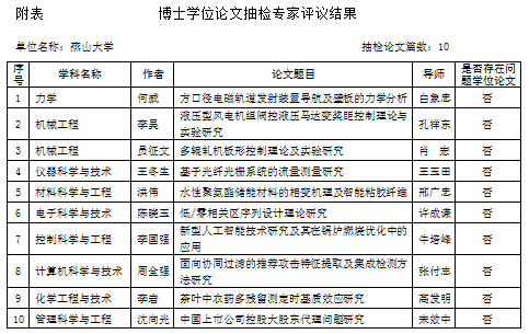 学位论文抽检是保证学位与研究生教育质量的重要措施。抽检结果成为检验高层次、创新型人才培养质量的重要标准。自2010年起,国务院学位办每年从国家图书馆调取博士学位论文进行随机抽检。每篇论文送3位专家进行评议,评审意见分为“合格”、“不合格”。前五年根据专家评议意见最终认定为“存在问题学位论文”全国的比例分别为:7%、6.9%、7.5%、5.1%和4.63%。博士学位论文抽检结果将作为博士学位授权点合格评估的一项重要指标,对“存在问题学位论文”比例较高或篇数较多的学位授权点,依据有关程序,责令限期整改,经整改仍无法达到要求的授权点,将撤销其学位授权。