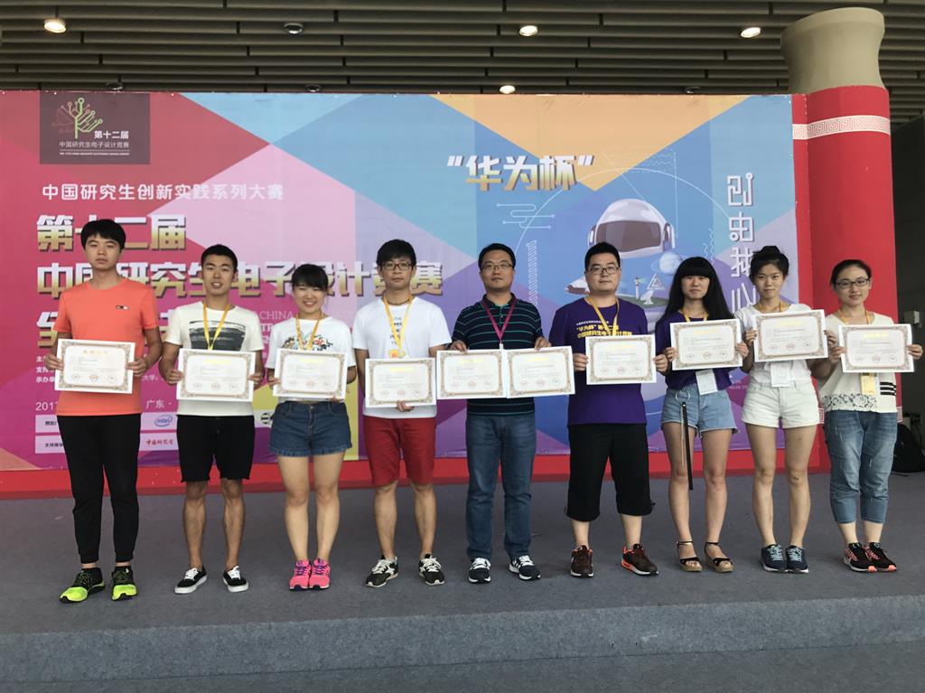 2017年8月19日-22日,由教育部学位与研究生教育发展中心、全国工程专业学位研究生教育指导委员会、中国电子学会联合主办的“华为杯”第十二届中国研究生电子设计竞赛全国总决赛在广东省惠州市举办,共有来自130家研究生培养单位的289支队伍同台比拼。由我校信息科学与工程学院张涛担任指导教师,张猛、杨爽、李和合、刘梦奇四名研究生组成的TaoTeam代表队和王佳琦、张文清、白星、刘川四名研究生组成的BUFF代表队分获二等奖和三等奖。继上届获得国赛二等奖后,再次取得优异成绩,同时获奖数量和水平均居河北省高校首位。