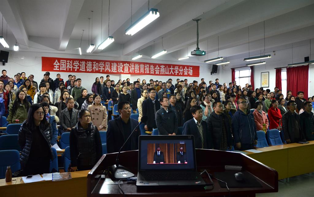 我校分会场设在东校区机械馆J3报告厅。会议由研究生院院长官英平教授主持。与会人员认真聆听李晓红、邱勇、周琪等三位院士作的科学道德和学风建设专题报告。此次报告会是学习贯彻党的十九大精神的一次宣讲,中国科协、教育部联合印发通知进行部署动员、抓好落实,进一步引导广大青年学子和科技工作者遵守学术规范、坚守学术诚信、完善学术人格、维护学术尊严,摒弃学术不端行为,努力成为优良学术道德的践行者和良好学术风气的维护者,为决胜全面建成小康社会、夺取新时代中国特色社会主义伟大胜利、实现中华民族伟大复兴的中国梦、实现人民对美好生活的向往而继续奋斗。