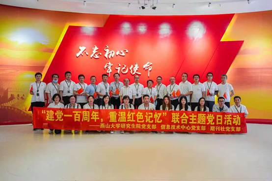 2021年6月5日至6日,研究生院党支部、信息技术中心党支部和期刊社党支部联合开展 “建党一百周年,重温红色记忆”主题党日活动,三个支部的党员赴平山县西柏坡、安新县白洋淀党建教育基地学习,进行爱国主义教育。