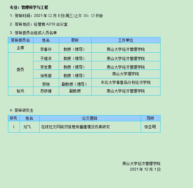 经济管理学院2021年秋季学期博士学位论文答辩公告(一)