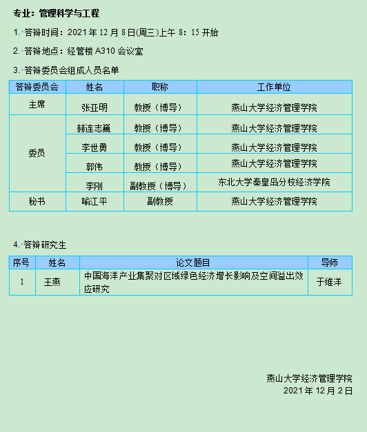 经济管理学院2021年秋季学期博士学位论文答辩公告(二)